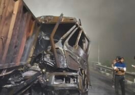 नेशनल हाईवे पर मौत का तांडव, दो ट्रकों की भिड़ंत के बाद जिंदा जला चालक
