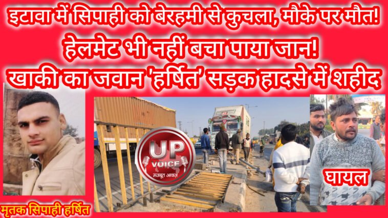 इटावा: उत्तर प्रदेश के इटावा जिले से एक बेहद दर्दनाक खबर सामने आ रही है। यहाँ नेशनल हाईवे पर नशे में धुत एक ट्रक चालक ने ड्यूटी पर तैनात सिपाही को अपनी चपेट में ले लिया। हादसे में सिपाही की मौके पर ही मौत हो गई, जबकि एक अन्य युवक गंभीर रूप से घायल है।